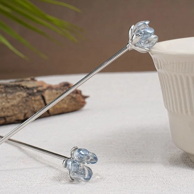 Crystal Lotus Hairpin for Women, Ancient Style, New Chinese Style, Simple Modern High-End Hairpin, Flower-Shaped Hairpin, Hanfu