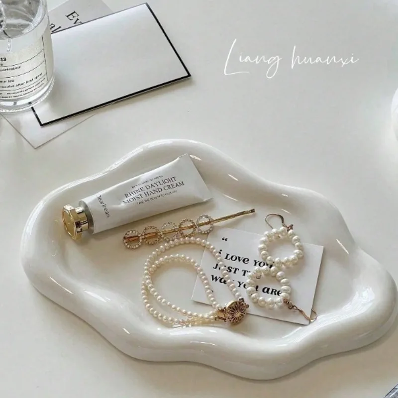 Minimalist Jewelry Storage Tray Creative White Silver Display Plate Electroplated Ornament Holder Decorative Desktop Organizer