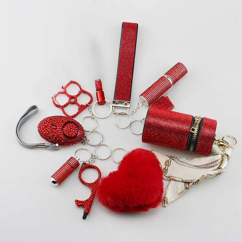10pcs/Set Self Defense Keychain Set For Women Safety With Window Breaker Spray bottle Lipstick holder Accessories Gifts