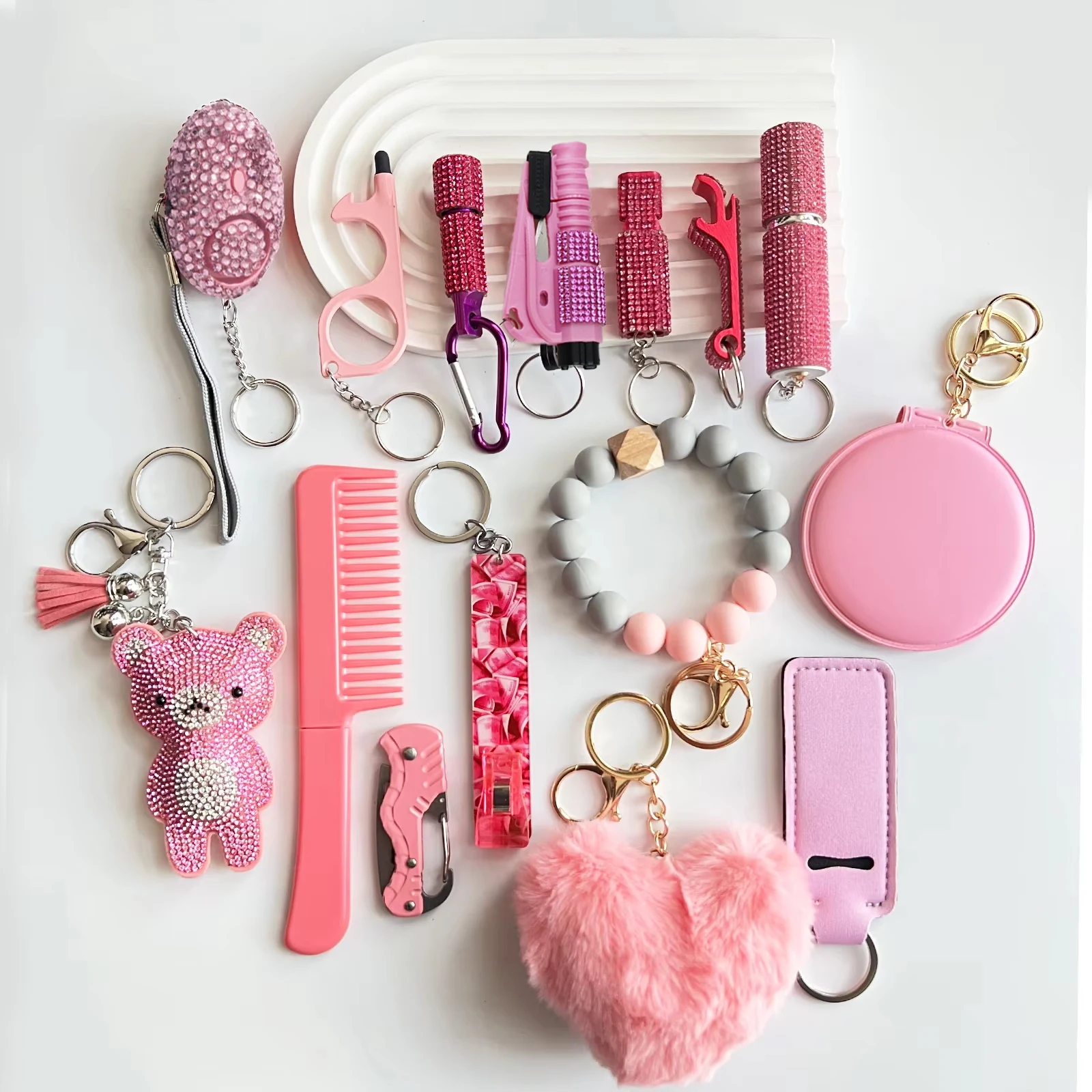 9pcs multifunctional and convenient female keychain set, 9-piece self-defense and safety protection keychain set