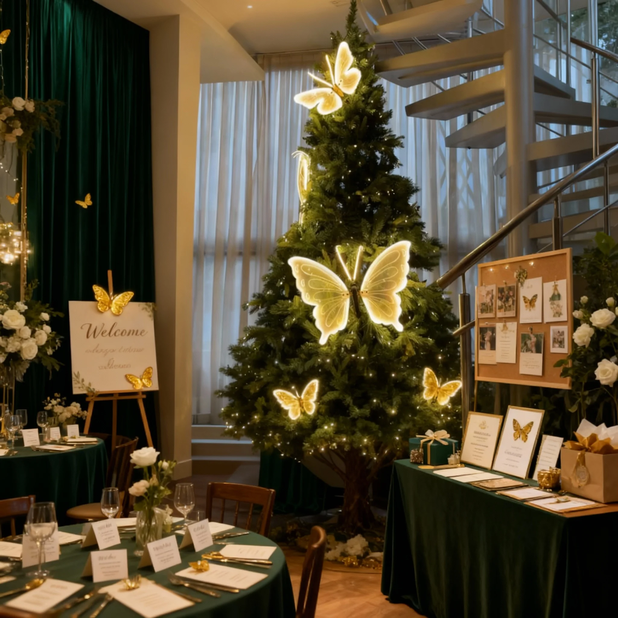Navidad LED Simulated Butterfly, Outdoor Wedding Room Vibrating Simulated Butterfly Christmas Tree Cosplay Decoration