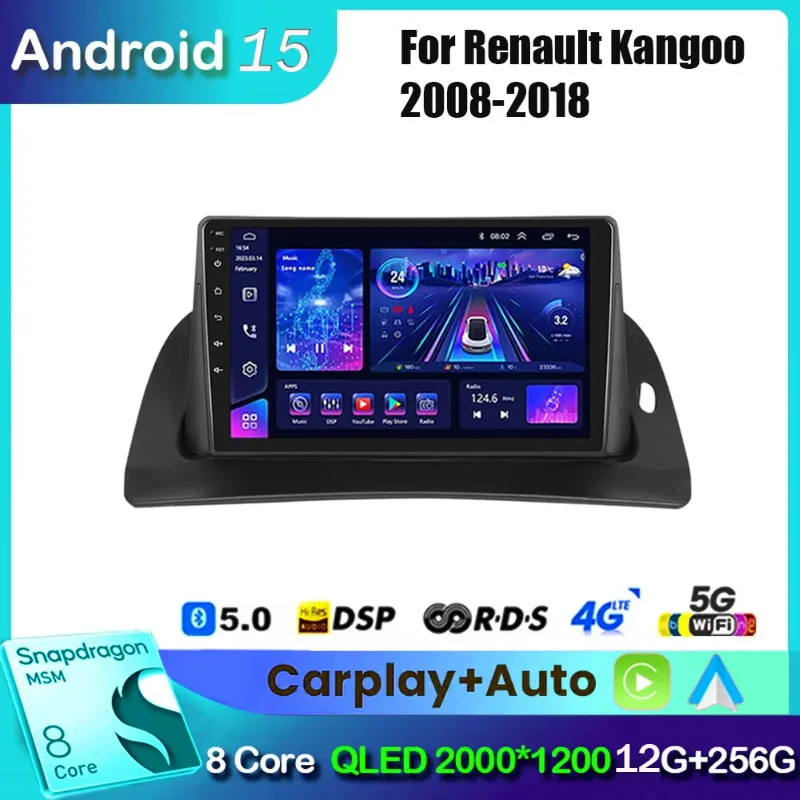 For Renault kangoo 2008 2009 2010 2011 2012 2013 2014 2015 - 2018 Car Radio Android 15 Carplay Auto Multimedia Video Player GPS