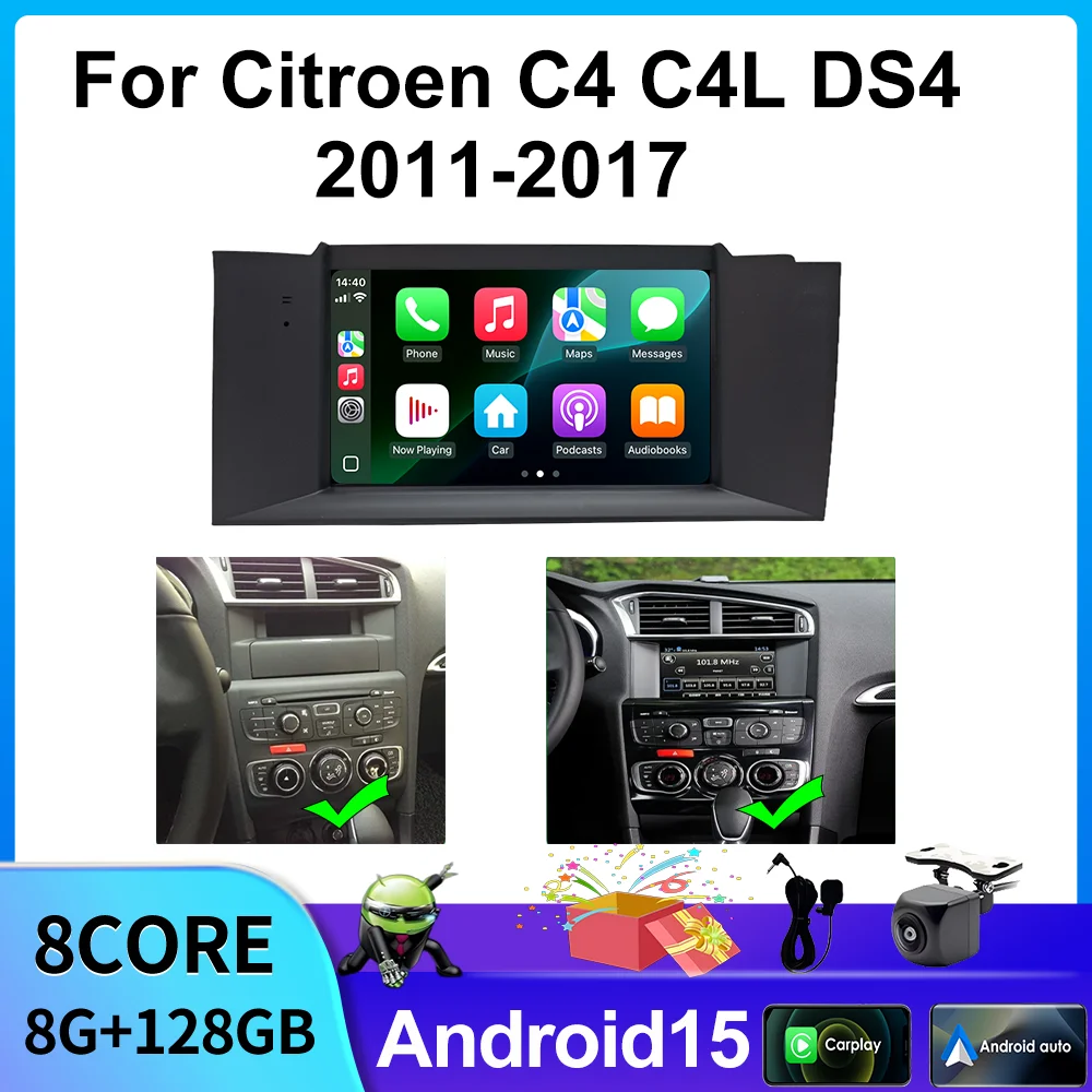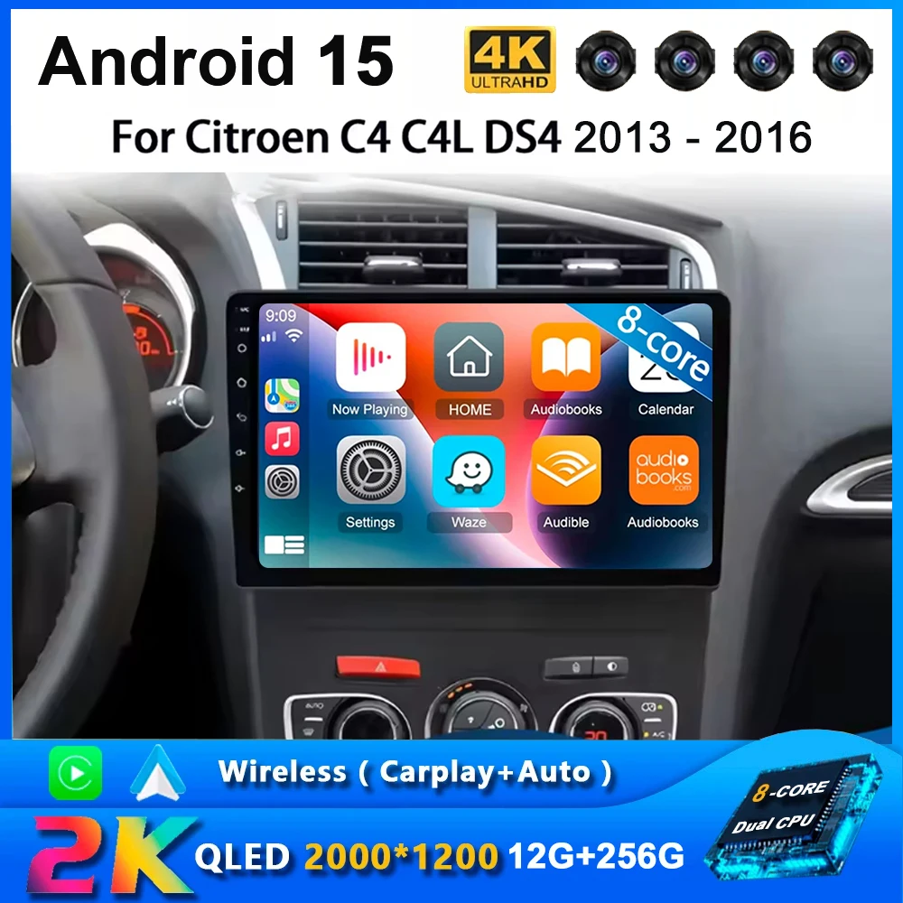 Wireless for CarPlay Android Auto Screen Radio for Citroen C4 C4L DS4 2012 - 2016 Multimedia Player Wifi Autoradio GPS Head Unit