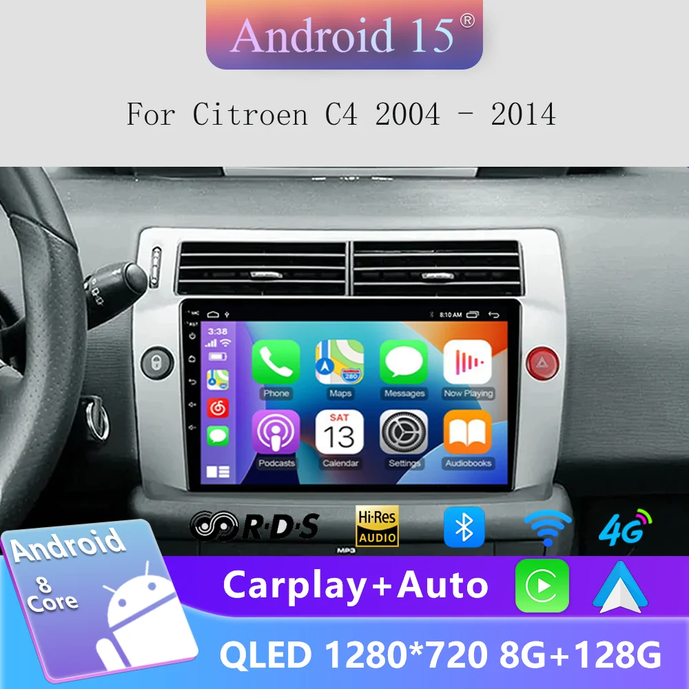 Android 15 Carplay Car Radio For Citroen C4 C-Triomphe Quatre 2004 - 2014 Navigation GPS Multimedia Player Stereo WiFi+4G DSP BT