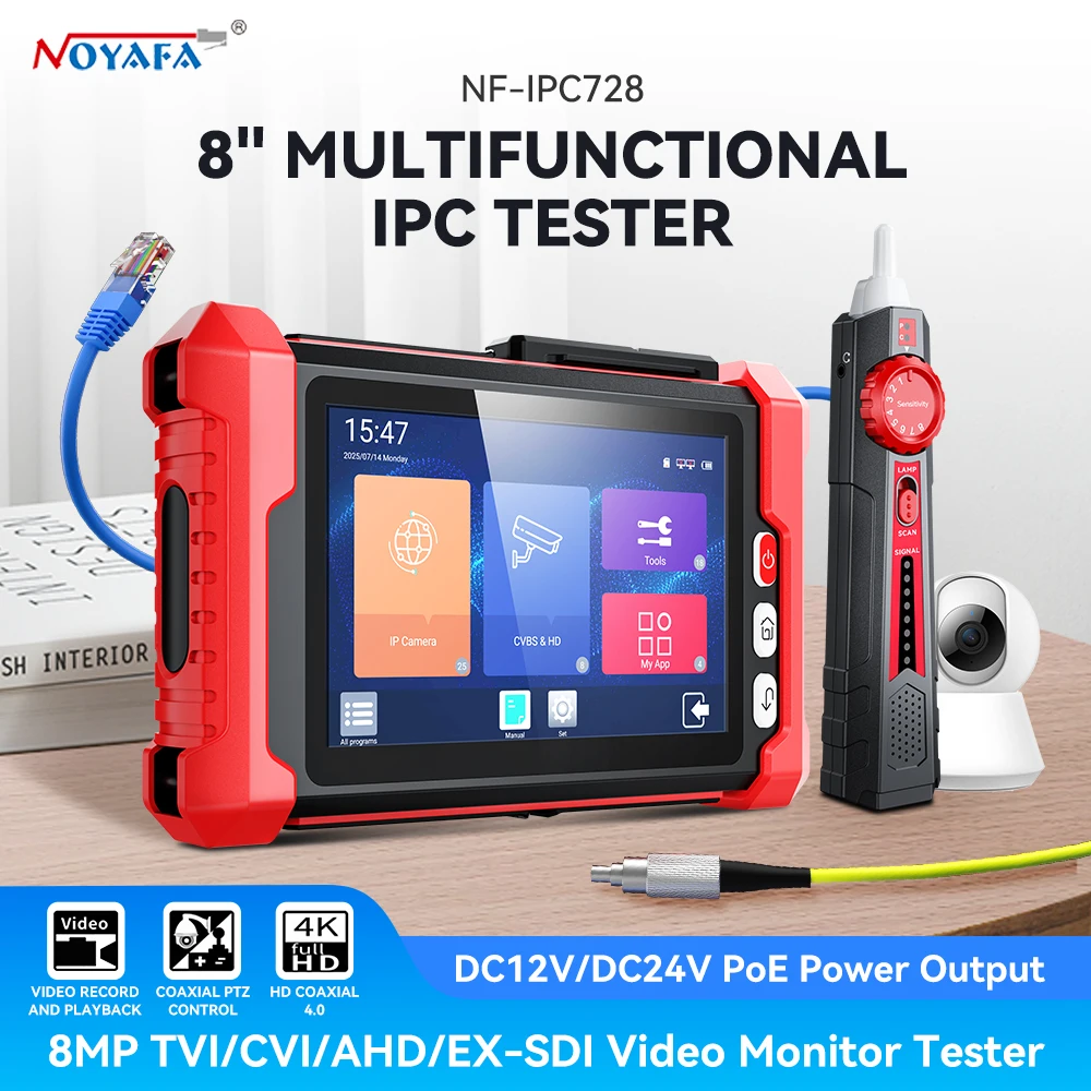 NOYAFA 8-inch CCTV IPC Tester 8MP AHD CVI TVI SDI Security Monitor Tester HDMI Input & Output IPC Camera Tester Cable Tracer