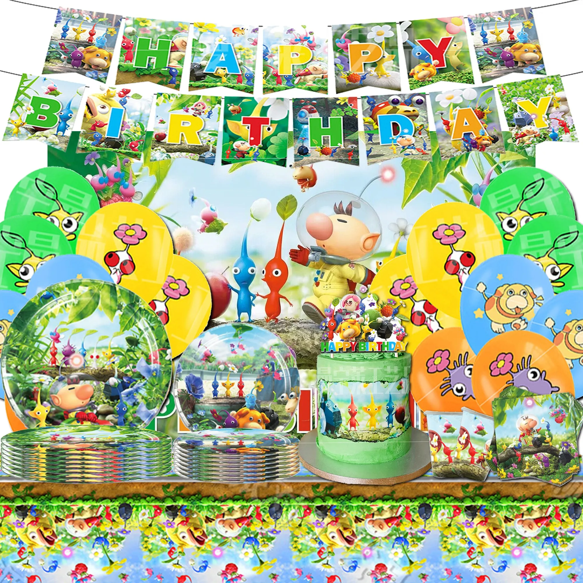 kawaii Game Pikmin Birthday Party cutlery plate Disposable Banner Cake Topper Hanging Flag Pikmin Balloons Birthday Decoration