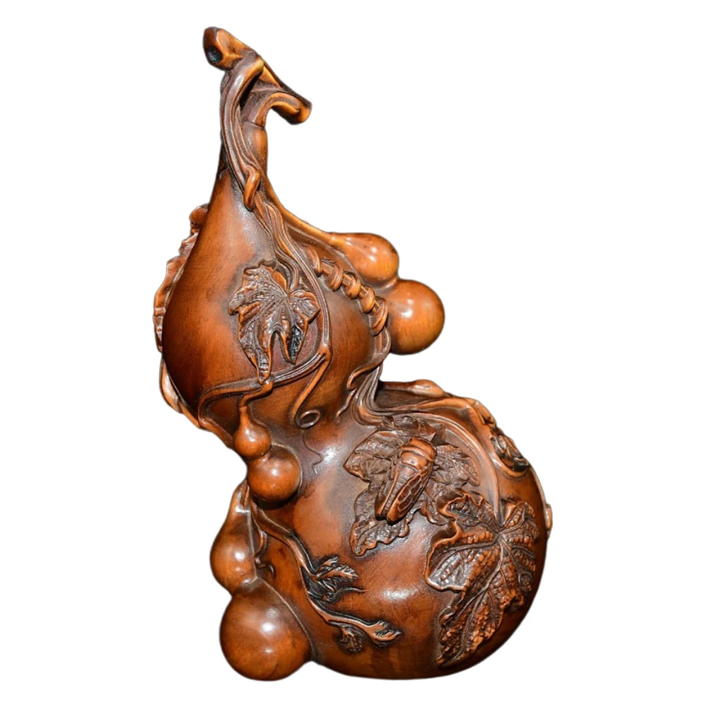 Gourd Lou Wu Natural Chinese Feng Shui Calabash Hu Lu Decoration Figurine, Gourds Ornament Crafts, Wealth Luck Statue, Good Deco