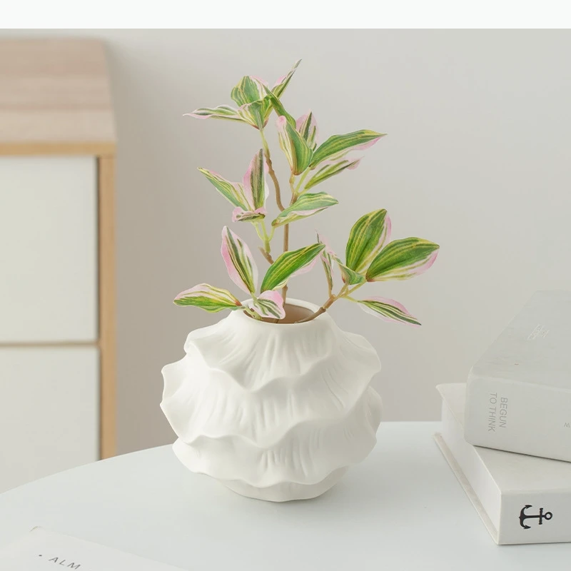 White Ceramic Vase Irregular Fold Calabash Flower Vase Floral Arrangement Accessories Flower Pot Room Decoration Accessories