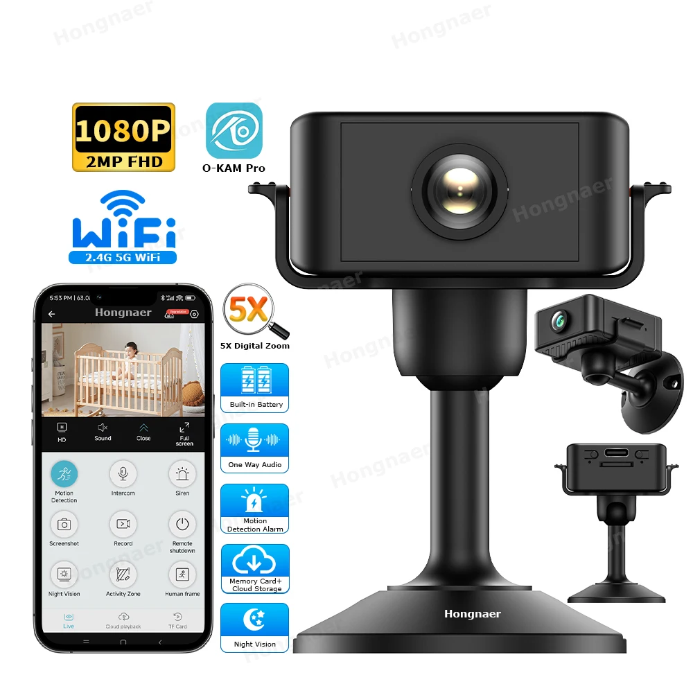 Hongnaer 2MP One Way Audio Indoor Wireless Surveillance IP Camera O-Kam Pro 2.4G 5G WiFi Low Power Security CCTV Battery Camera