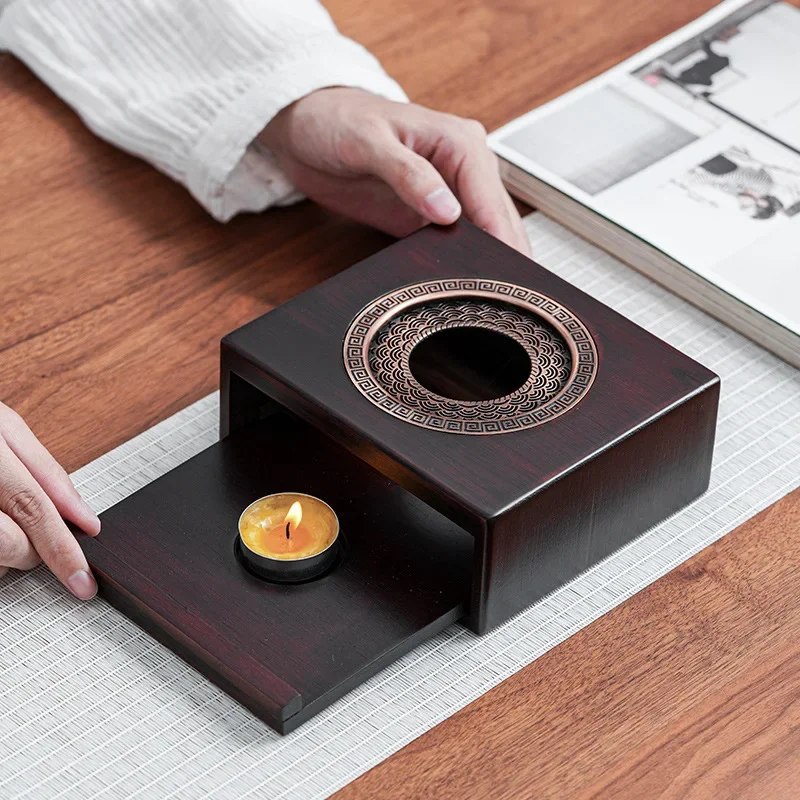 Black Walnut Candle Tea Warmer,Home Office Outdoor Camping Ambiance Portable Tea Brewing Base,Teapot Trivet Tea Stand(No Candle)