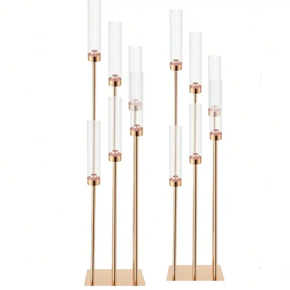 1pc, 6 Arms Gold Floor Candelabra Centerpieces Metal Candle Holders Candlestick Pillar Taper Candle Stand For Wedding
