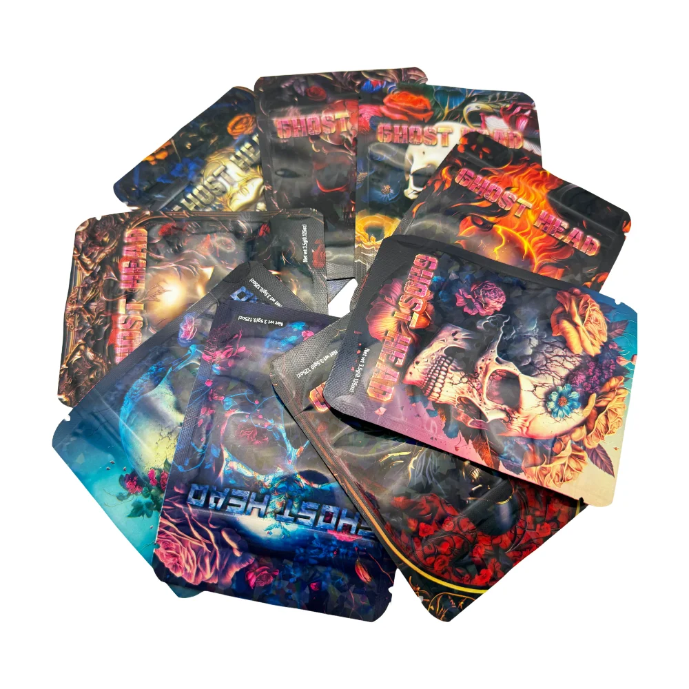 50Pcs 3.5g skull Smell Proof Mylar Bags Matte Glossy Printed Ziplock Bag for Helloween Food Candy Sugar Present Gift Box