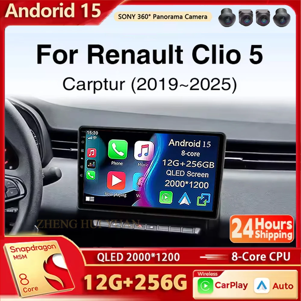 Carplay Auto Car Radio Multimedia Android 15 For Renault Kaptur Captur Clio Samsung QM3 2013 2014 2015 2016 Stereo Head Un