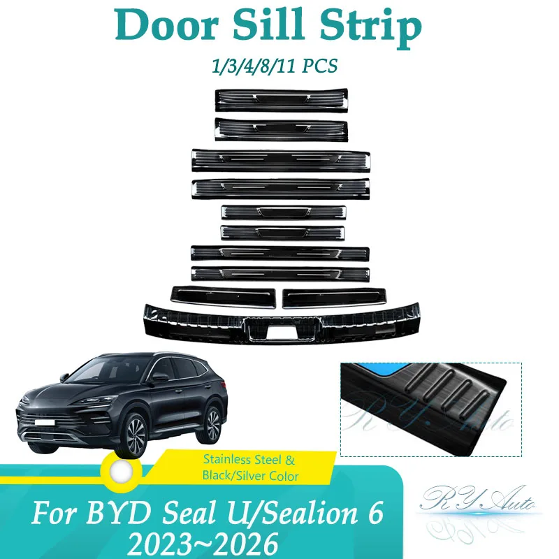 AEBY For BYD Sealion 7 2024 Stainless Steel Body Side Molding Trim, Car Exterior Door Edge Protective Strip Guard Decor