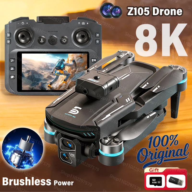 New Z105 RC Drone 8K Professional HD Camera FPV Optical Flow Positioning Brushless Motor 4.3 Inch Screen Control Quadcopter Toys