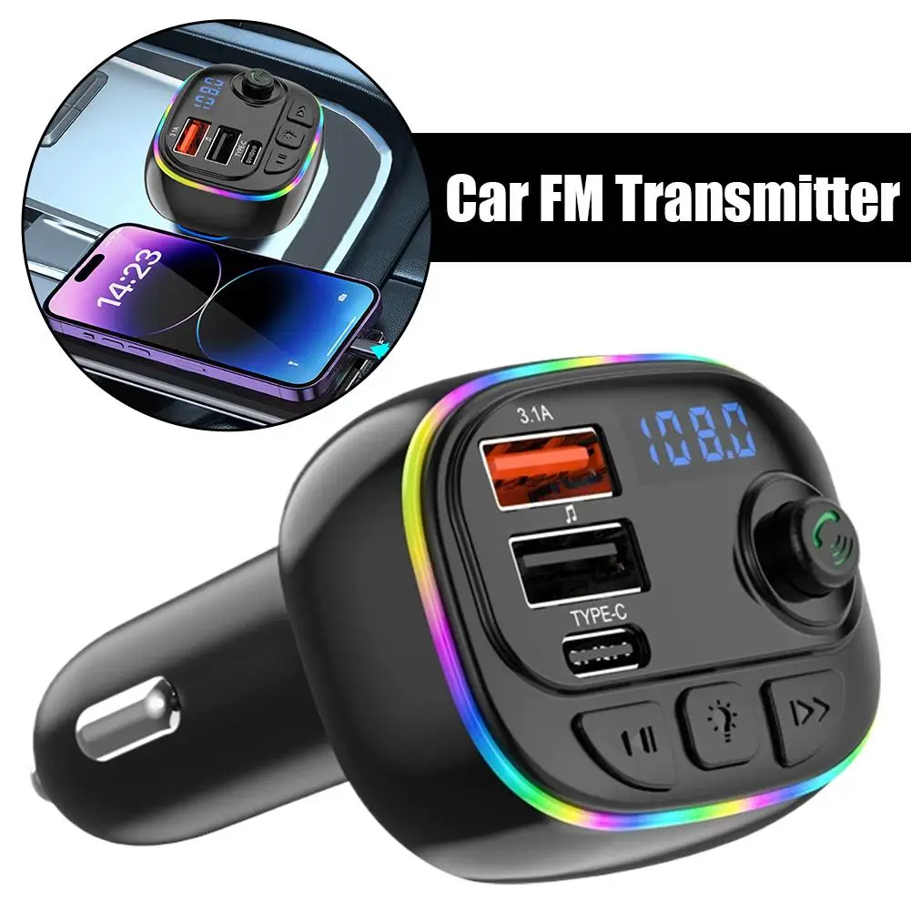 Car Bluetooth 5.0 FM Transmitter PD Type-C Dual USB Ambient MP3 Fast Handsfree Modulator 3.1A Player Charger Colorful Light I2S1