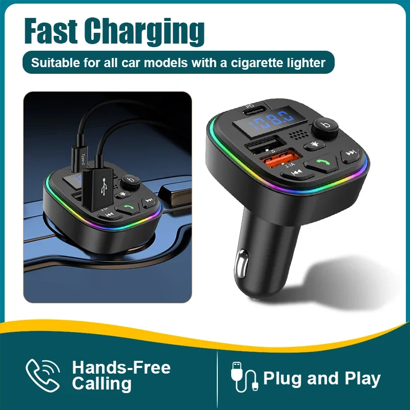 Bluetooth 5.4 Transmitter for Car Handsfree AUX Radio Modulator MP3 Player with 22.5W PD30W Fast Charge Adapter Car Accessories