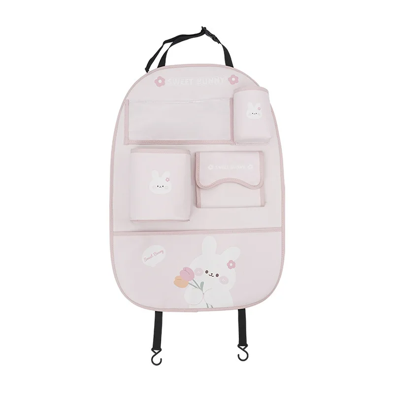 Cute Cartoon Car Seat Back Organizer - Multifunctional Auto Interior Anti-Kick Pad with Built-in Car Trash Can