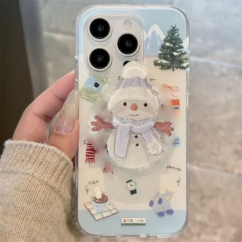 Korean Cartoon Cute Snowman Stand Grip Tok GripTok Holder Ring Finger Ring Support Bracket For iPhone 16 Girl Phone Accessories
