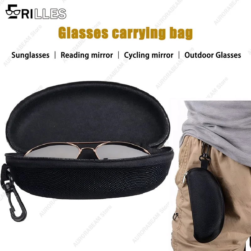 Portable Sunglasses Travel Case, Shockproof EVA Material with Hook, Large Shockproof Square Box for Sports, Travel & Cycling