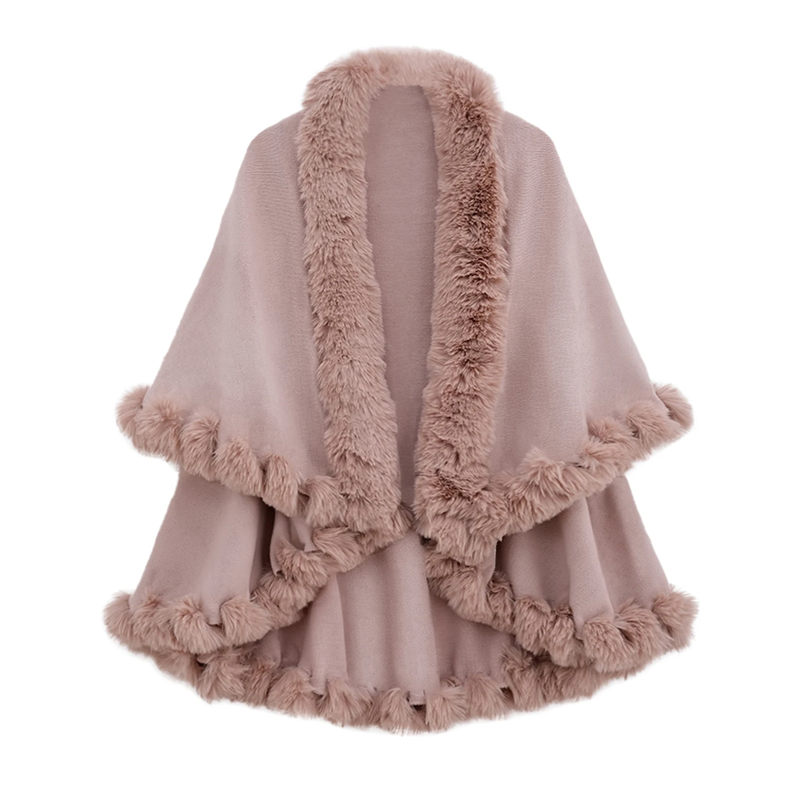 Winter Warm Long Knitted Faux Mink Velvet Thick Poncho Cape Cashmere Loose Women Batwing Sleeves Cardigan Shawl Tassel Cloak