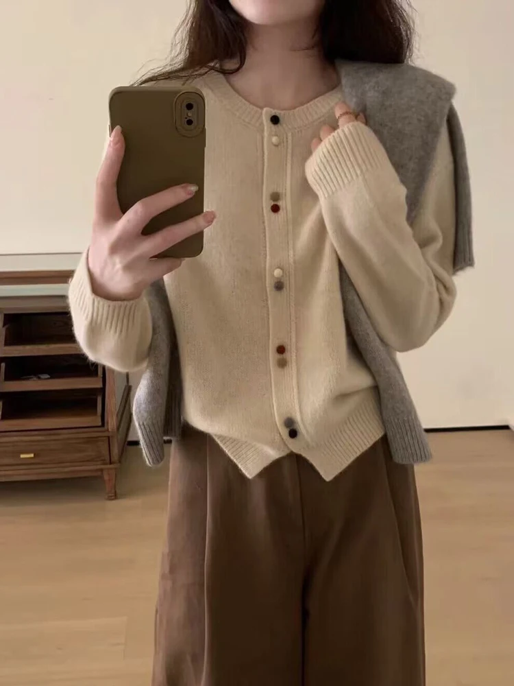 100% Merino Wool Sweater Women Cardigan Scarf Soft Solid Cashmere Knitwear Shawl Spring Autumn Female Korean Popular Grace Tops