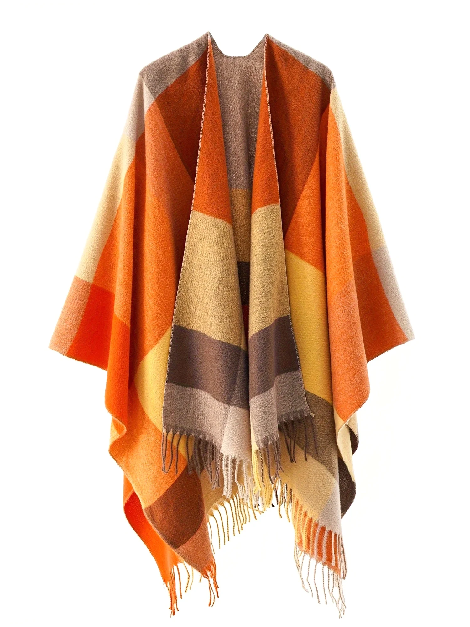 Women's Fashion Collar Double Layer Cashmere Imitation Cloak Shawl Large Knitted Cardigan