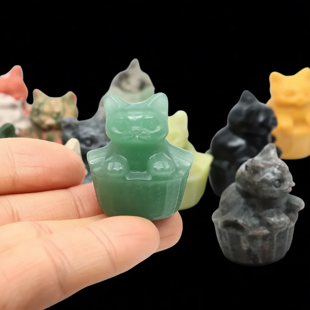 G6KF Natural Gemstones Lucky Cats Decoration for Living Room Ambiances Enhancement