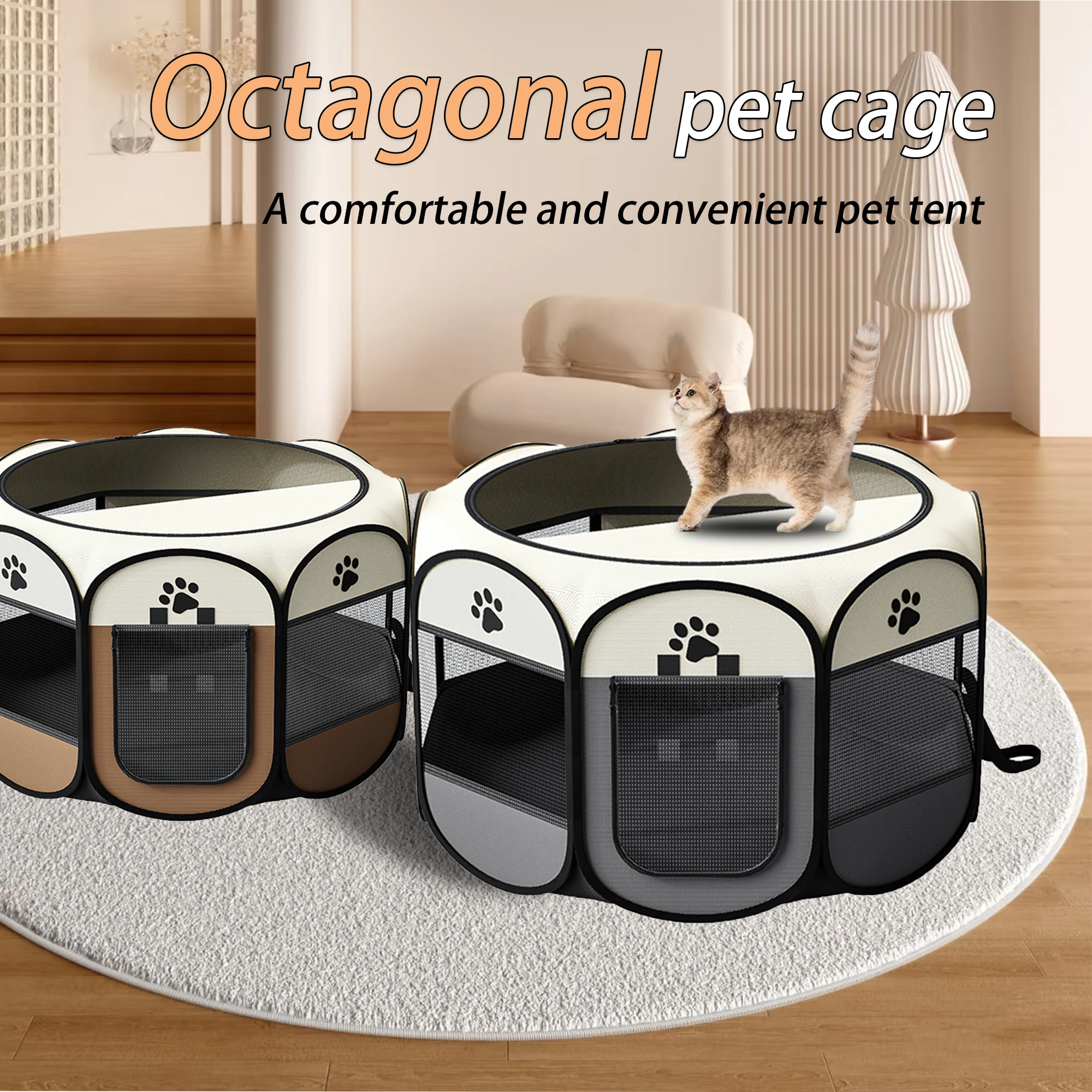 All-In-One All-Inclusive Cat Delivery Room, Closed Pet Octagonal Cage, Maternity Room, Female Cat Pet Delivery Room Fence, Octagonal Pet Fence, Cat Litter Box Pet Tent, Anti-Scratch Foldable Oxford Cloth Dog Cage, Dog Fence, Puppy, Kitten, Rabbit and Other Animal Outdoor Camping Tent