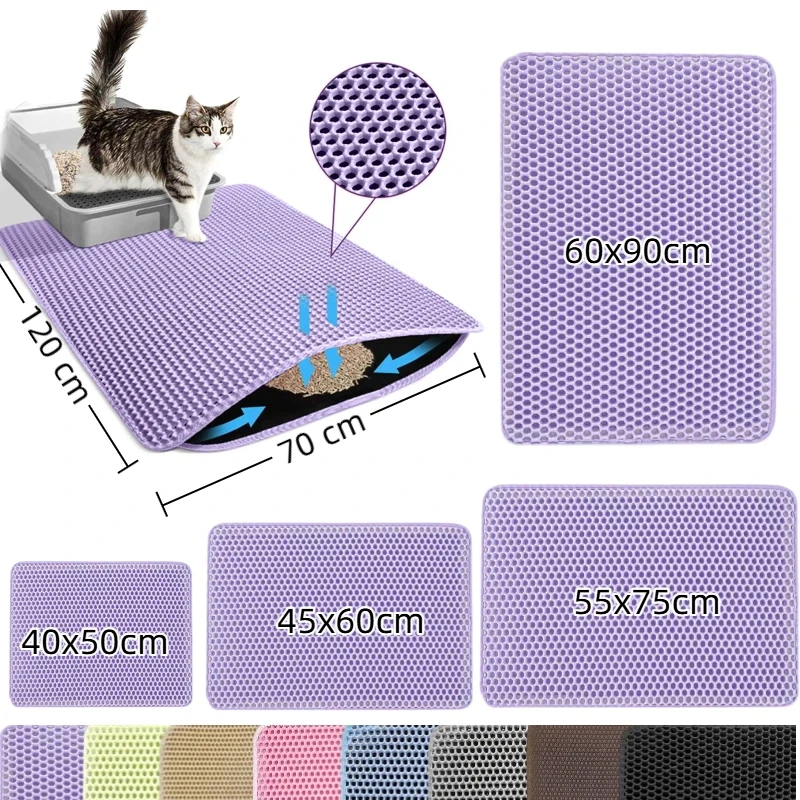 Purple Cat Litter Mat Double Layer Pet Non Slip Big Pet Litter Box Filter Mat Wear Resistant Waterproof Anti-slip Cat Litter Mat