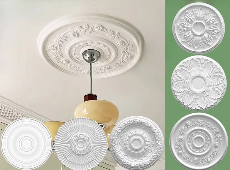 Gold Round Ceiling Medallion Steel Reinforced PU Decorative Ceiling Plate Easy Installation Home Bedroom Living Room Lighting
