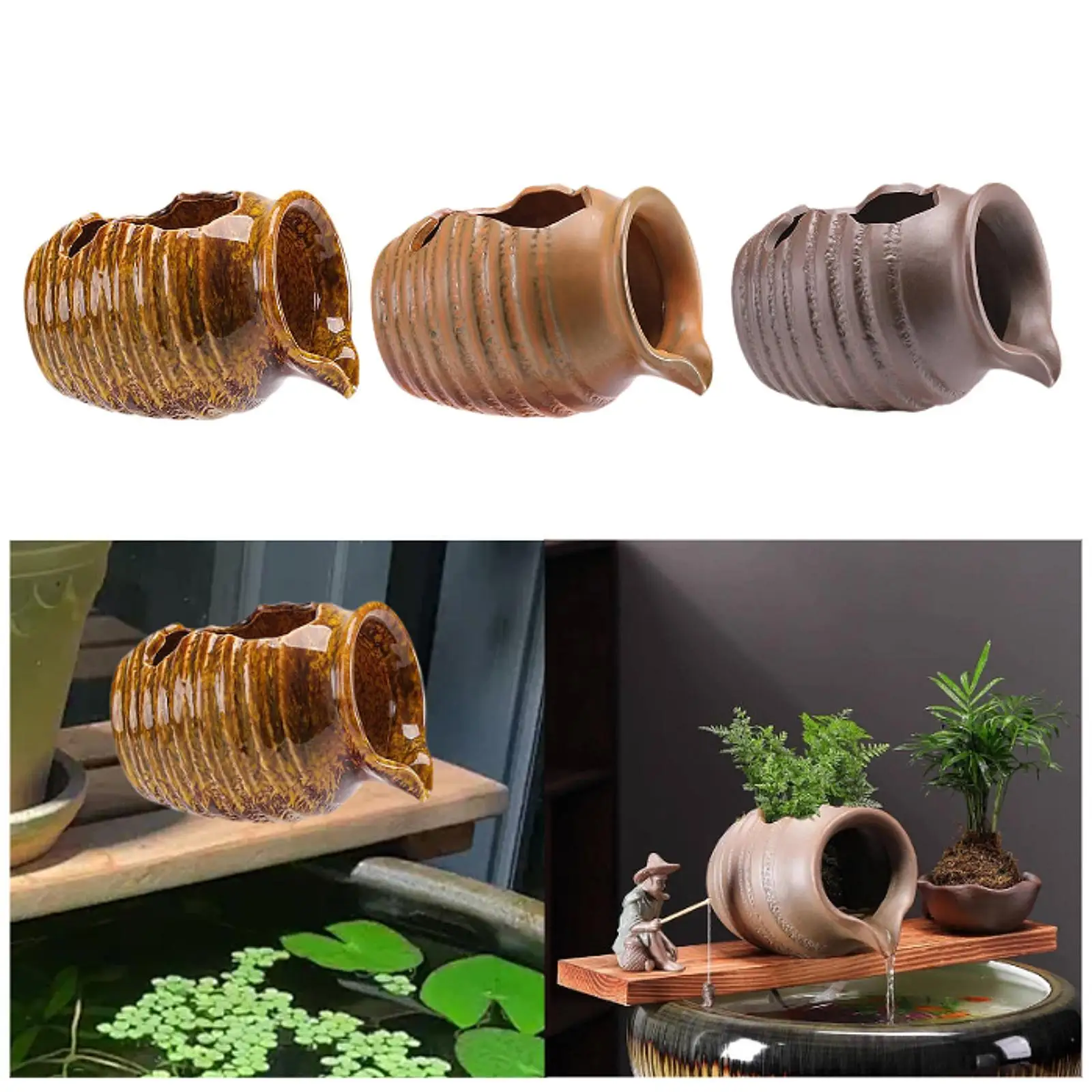 Landscape Ceramic Water Fountain Jar Spitter for Garden Outdoor Decor Indoor Tabletop Aquarium Circulating Water Feature