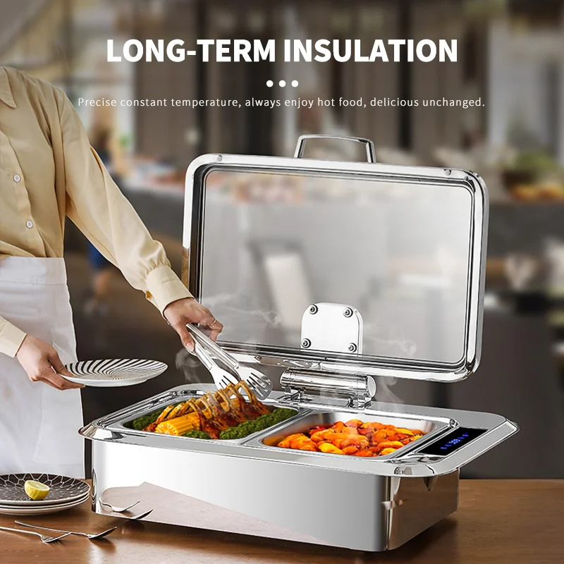 Hotel Buffet Thermal Food Warmer Set Restaurant Chaffing Stainless Steel Chefing 6L Round Roll Top Chafing Dishes For Sale