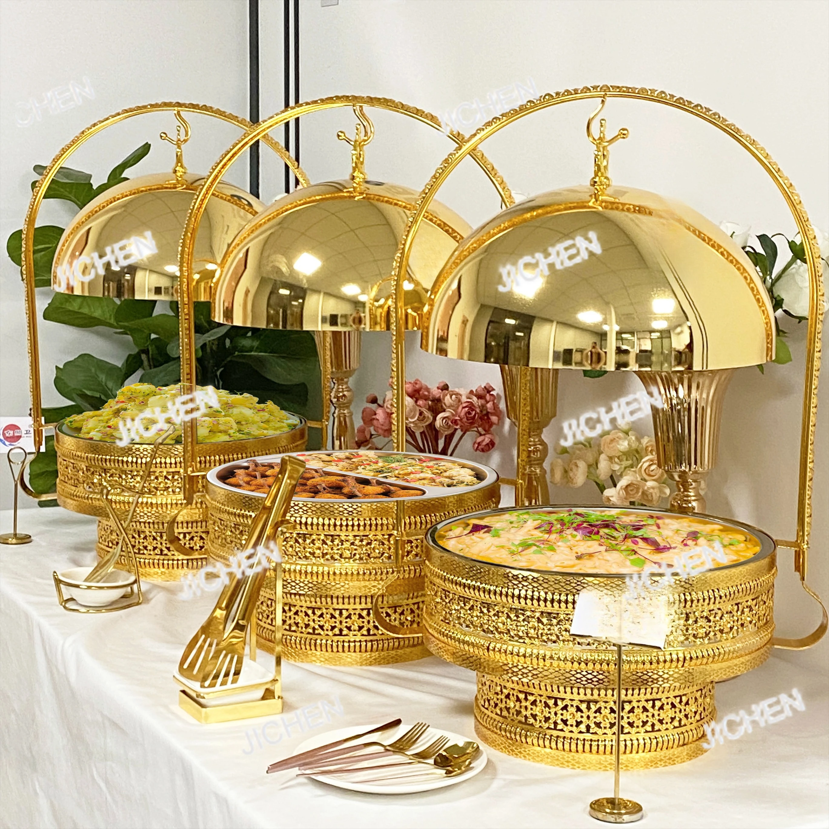 WINNERS Gold Rim Hammer Point Chaffing Dish Food Catering Buffet Stove for Hotel