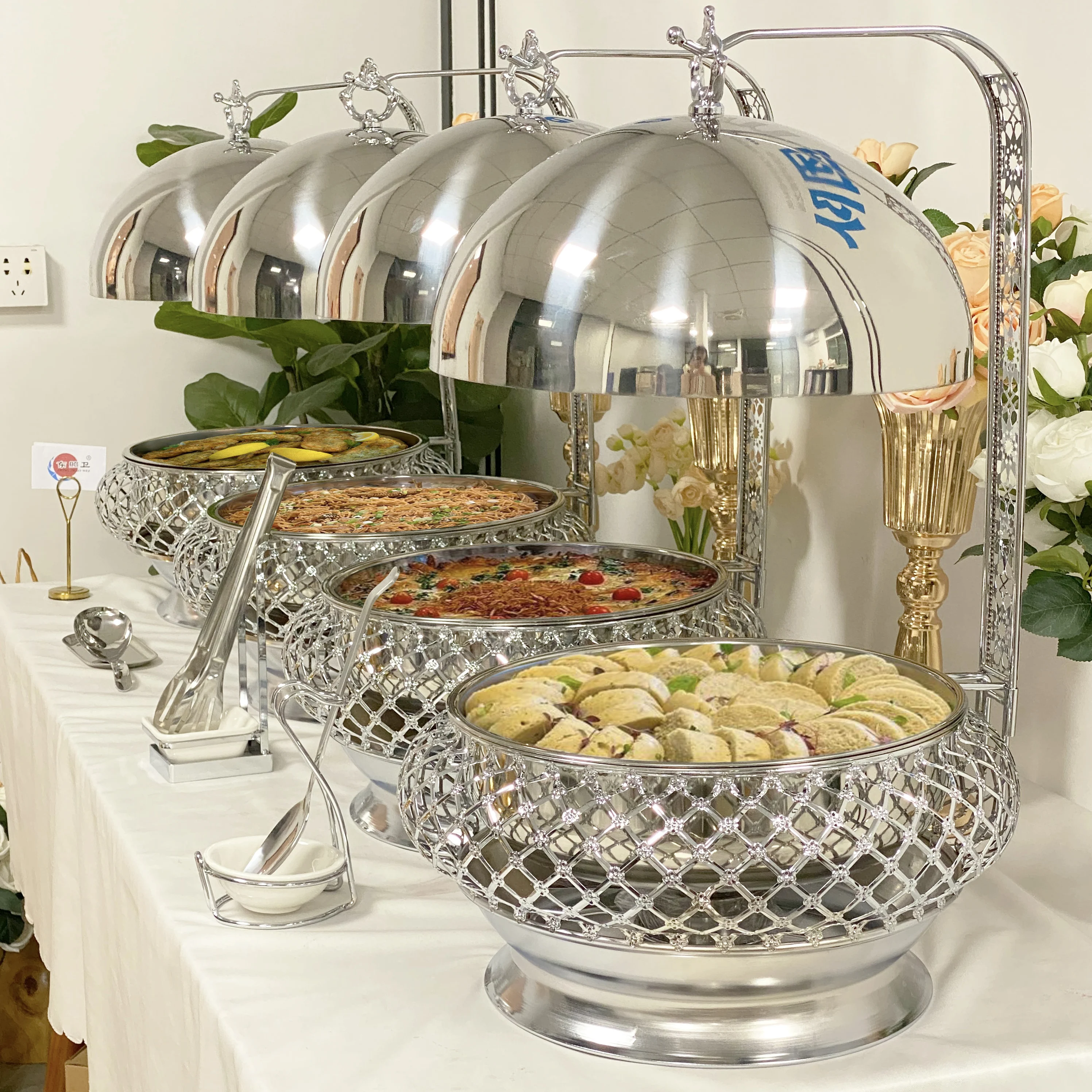 Wedding Party Luxury Serving Chaffing Dishes Buffet Food Warmer Cheffing Catering Stainless Steel Hanging Chafing Dish Factory