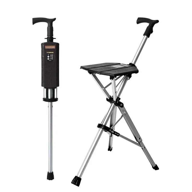 Adjustable Walking Stick with Seat Telescope Chair Aluminum Adult Crutches Stool Women Men