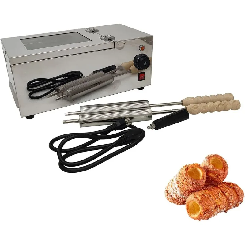 Chimney Cake Cutter Baking Machine 2 Stainless Steel Rollers Kurtos Kalacs Oven Electric 1500W Ice Cream Bread Cone Maker Cutter