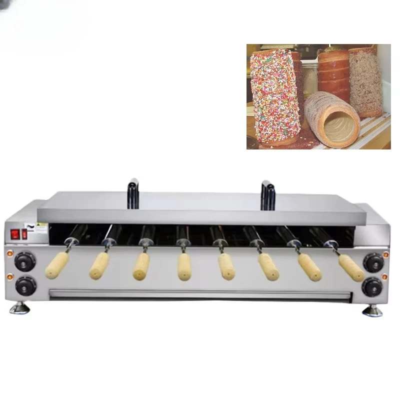 With 8 Roller Electric Hungarian Chimney Cake Maker Chimney Cake Rolls Grill Oven Machine Waffle Maker Bread Roll Baking Machine