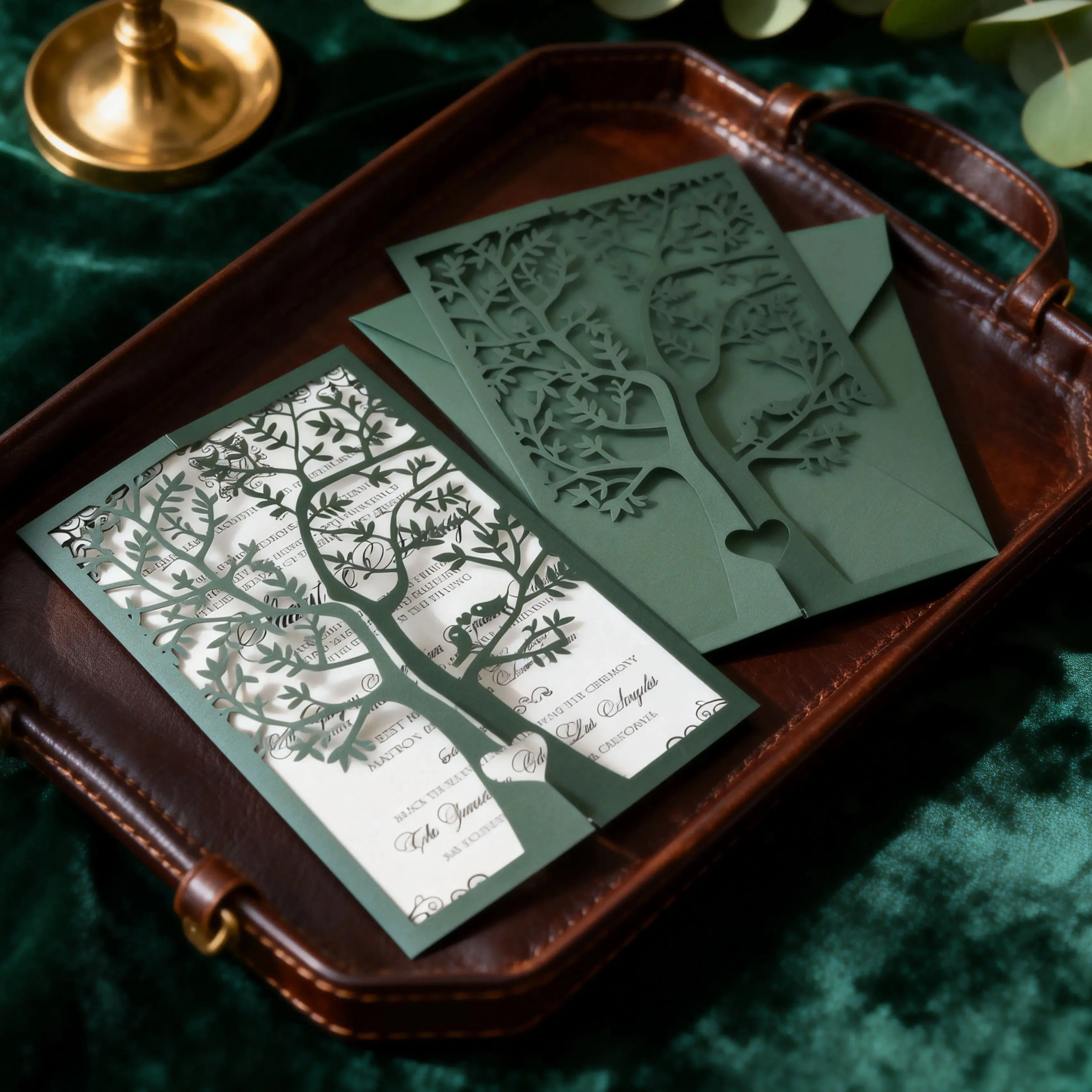 10pcs Luxury Laser Cut Tree Wedding Invitations Card Custom Personalized Greeting Cards for Engagement Birthday Party Decoration