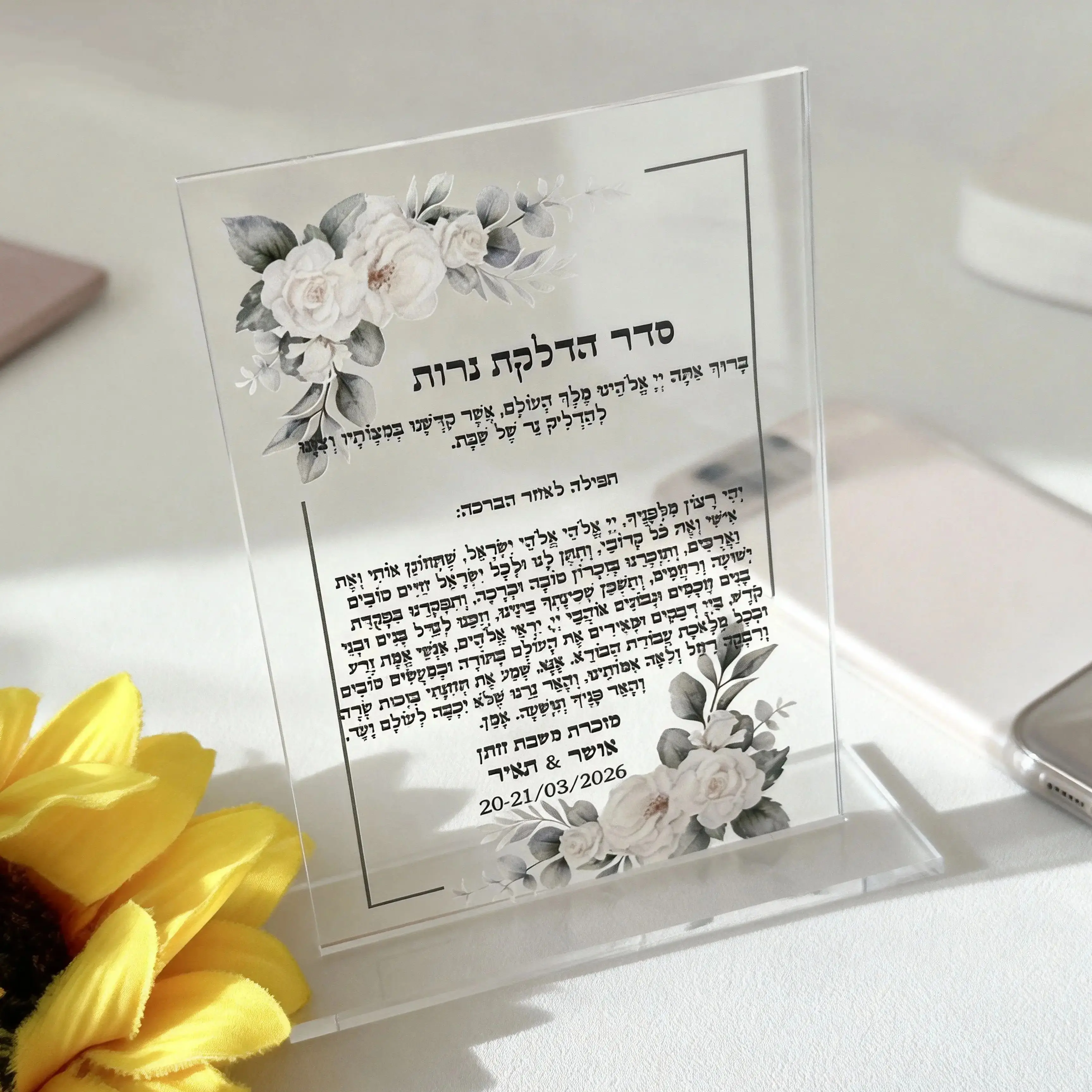 10pcs Custom Hebrew Blessing Acrylic Cards,Transparent Jewish Prayer Invitation,Personalized Party Favor for Wedding,Shabbat Dec