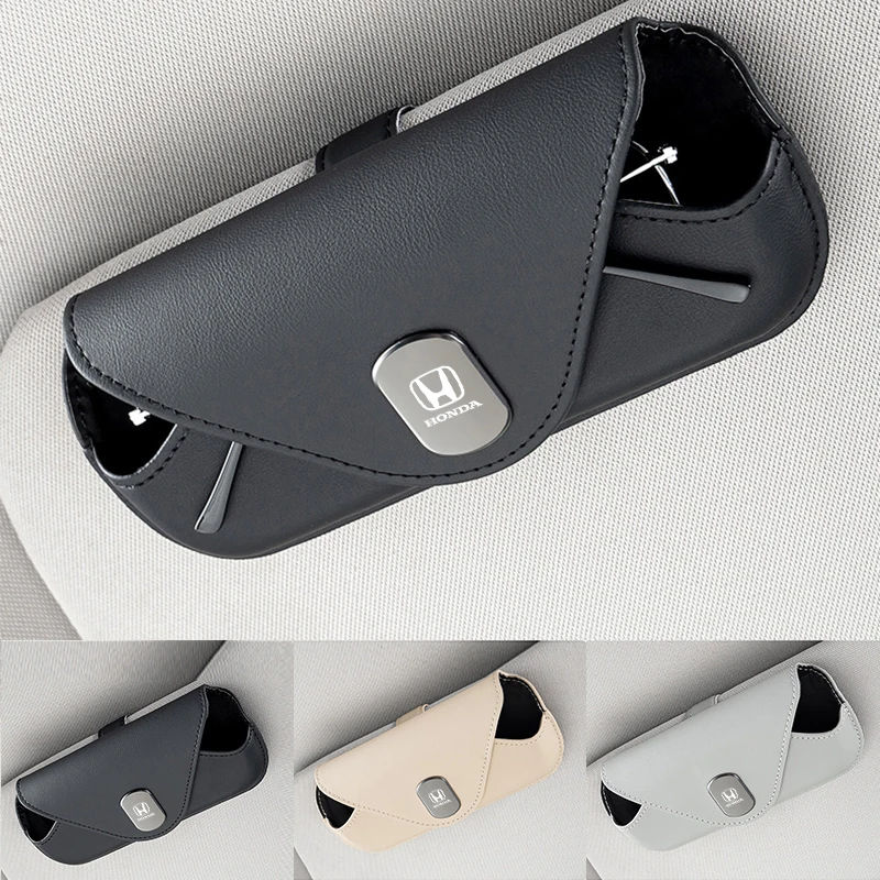 Leather Car Sun Visor Glasses Case Box Sunglasses Storage Clip For Honda Mugen Power Civic Accord CRV Hrv Jazz CBR VFR Accessory