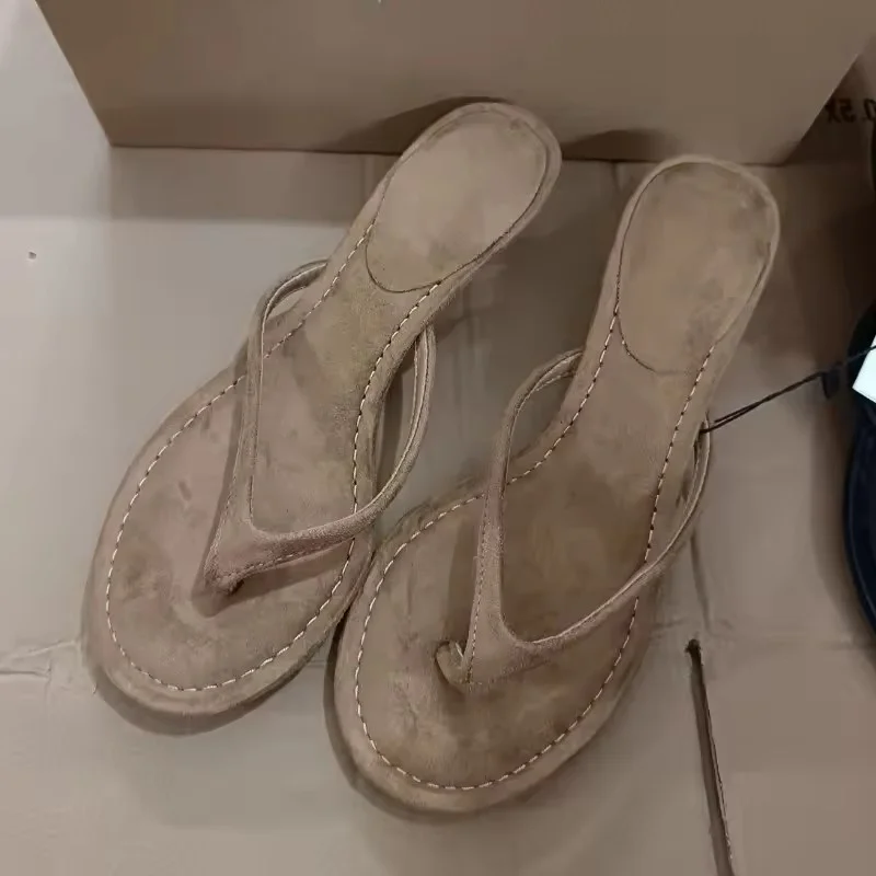 Brown Flip Flops Ladies Street Thin Low Heels Slippers Women Round Clip Toe Sandals Female Slides Shoes Beach Party Flip Flops