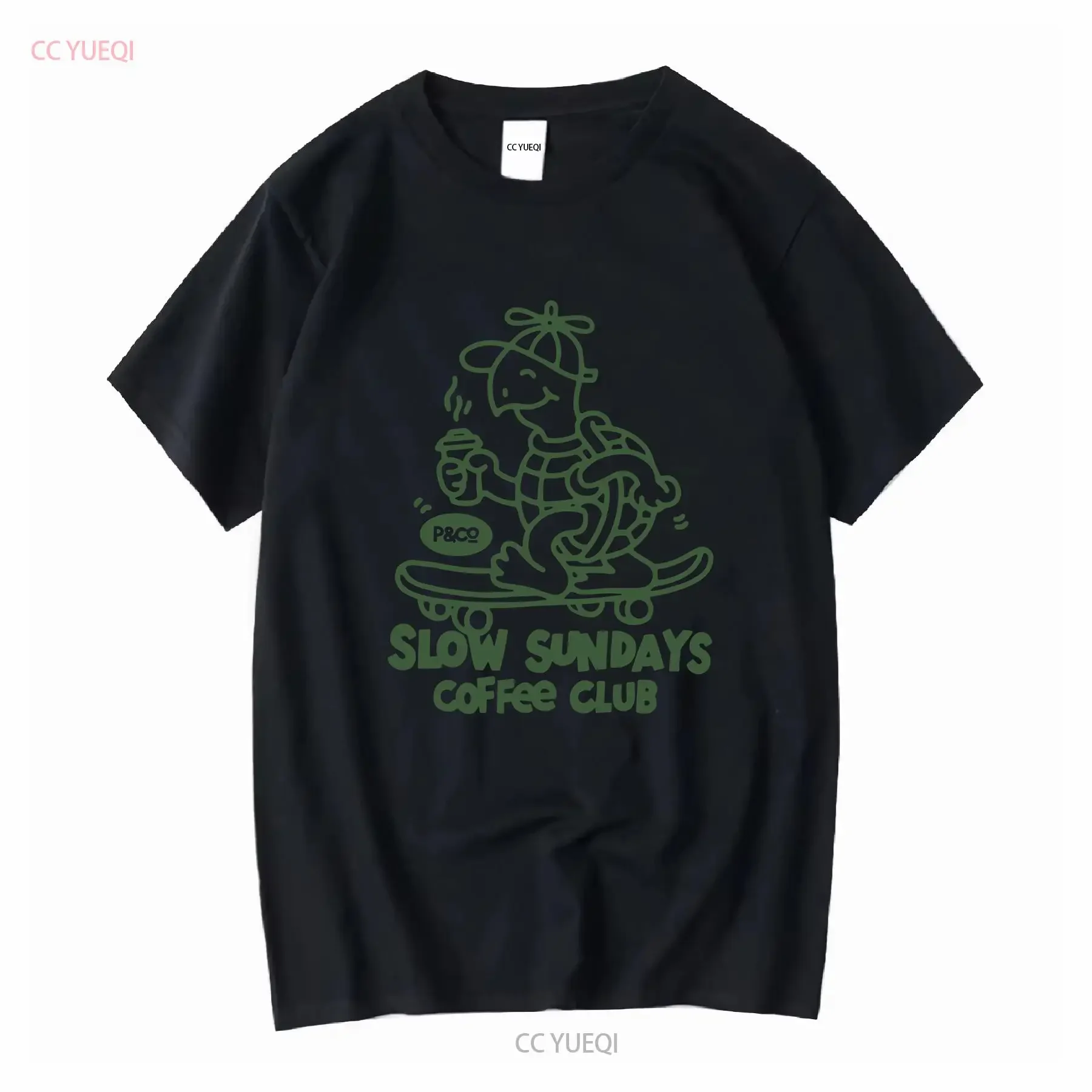 P CO Slow Sundays Coffee Club T shirt Skateboarding White XL vintage Washed Casual Stylish Versatile Comfortable Breathable