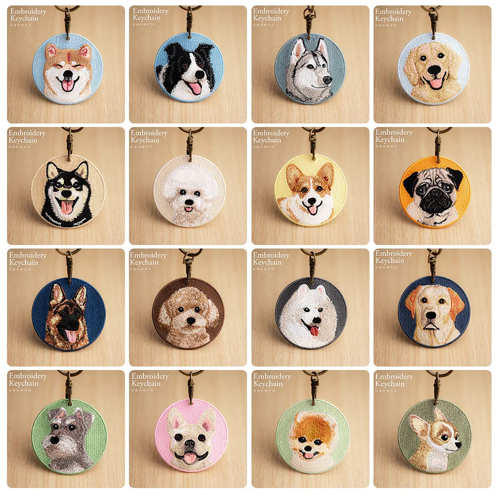 1 Piece Embroidered Dog Patch Key Chain - Cute Pet Themed Durable Keychain Key Ring for Easy Attachment