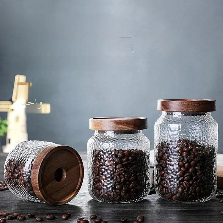 Glass Sealed Jar Spice Grains Jar Large Dust-proof Storage Jar Acacia Wood Cover Food Coffee Moisture-proof Storage Jar