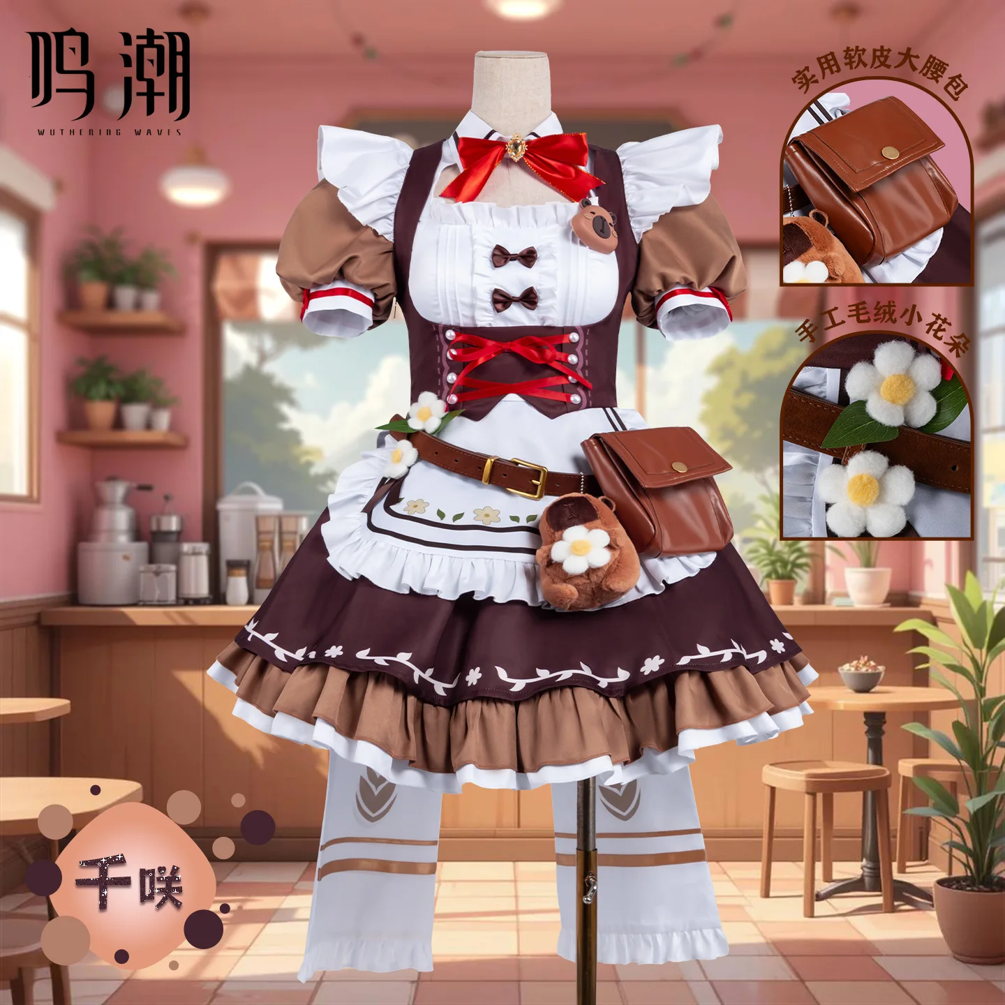 Wuthering Waves Chisa Cosplay Costume Collaboration Coffee Shop Game Character Maid Dress Accessory Wig Set Halloween Costume