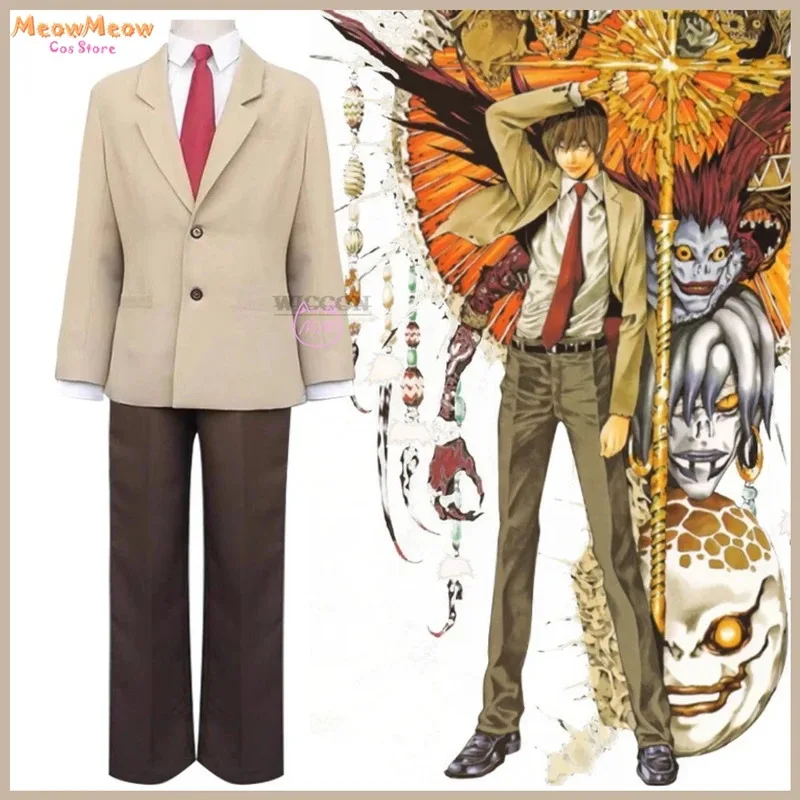 CyAnime Death cos Note Yagami Light Cosplay Costume Wig Coffee Color School Uniforms Full Set Adult Man Halloween Carnival Suit