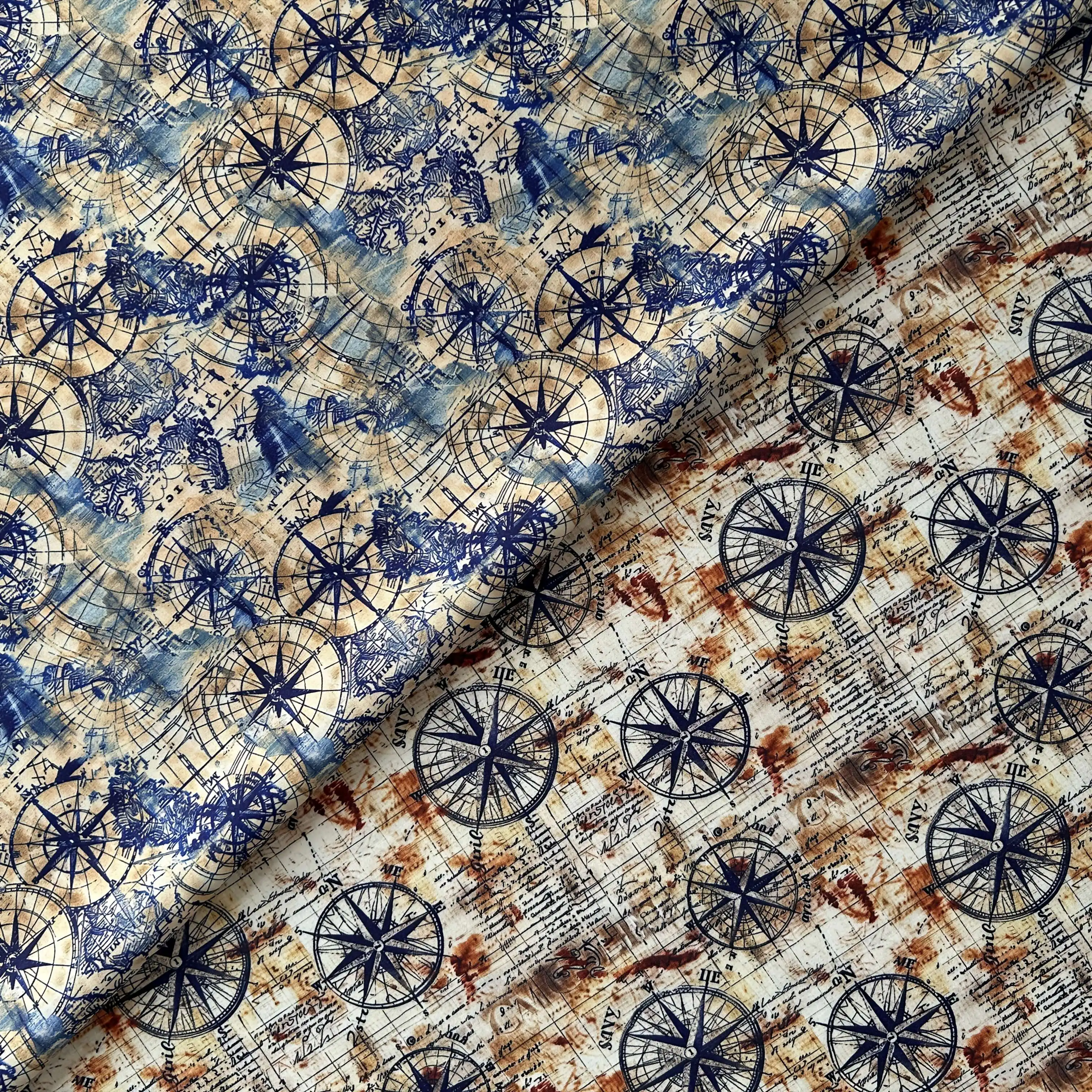 1pc, Nautical compass print, resembling an old navigation log salvaged from a sunken ship, hand sewn fabric, 100% polyester