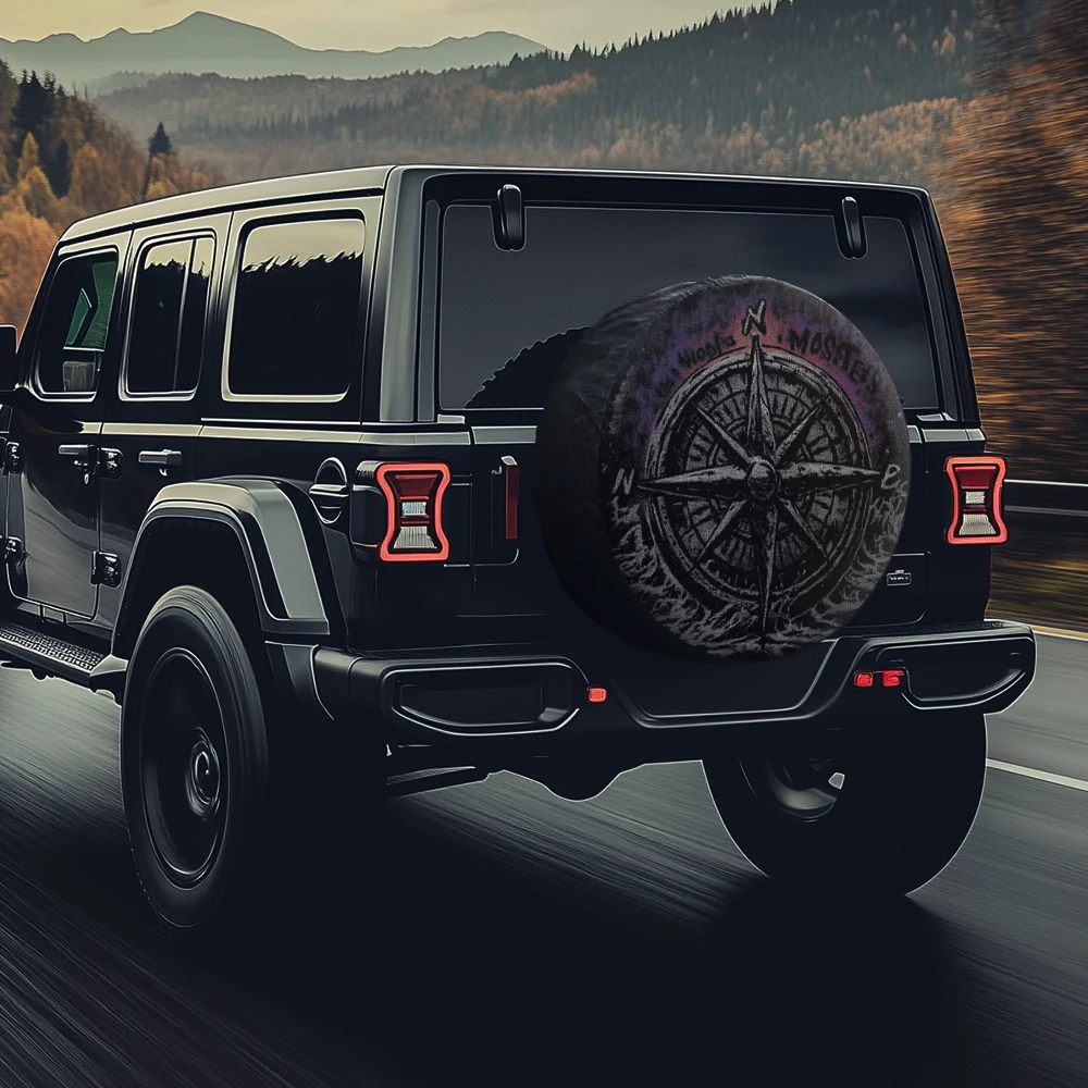 Vintage Compass & Nautical Wheel Design Tire Cover - Durable All-Terrain Protection For SUVs, Pickups, Crossovers & Off-Road Veh