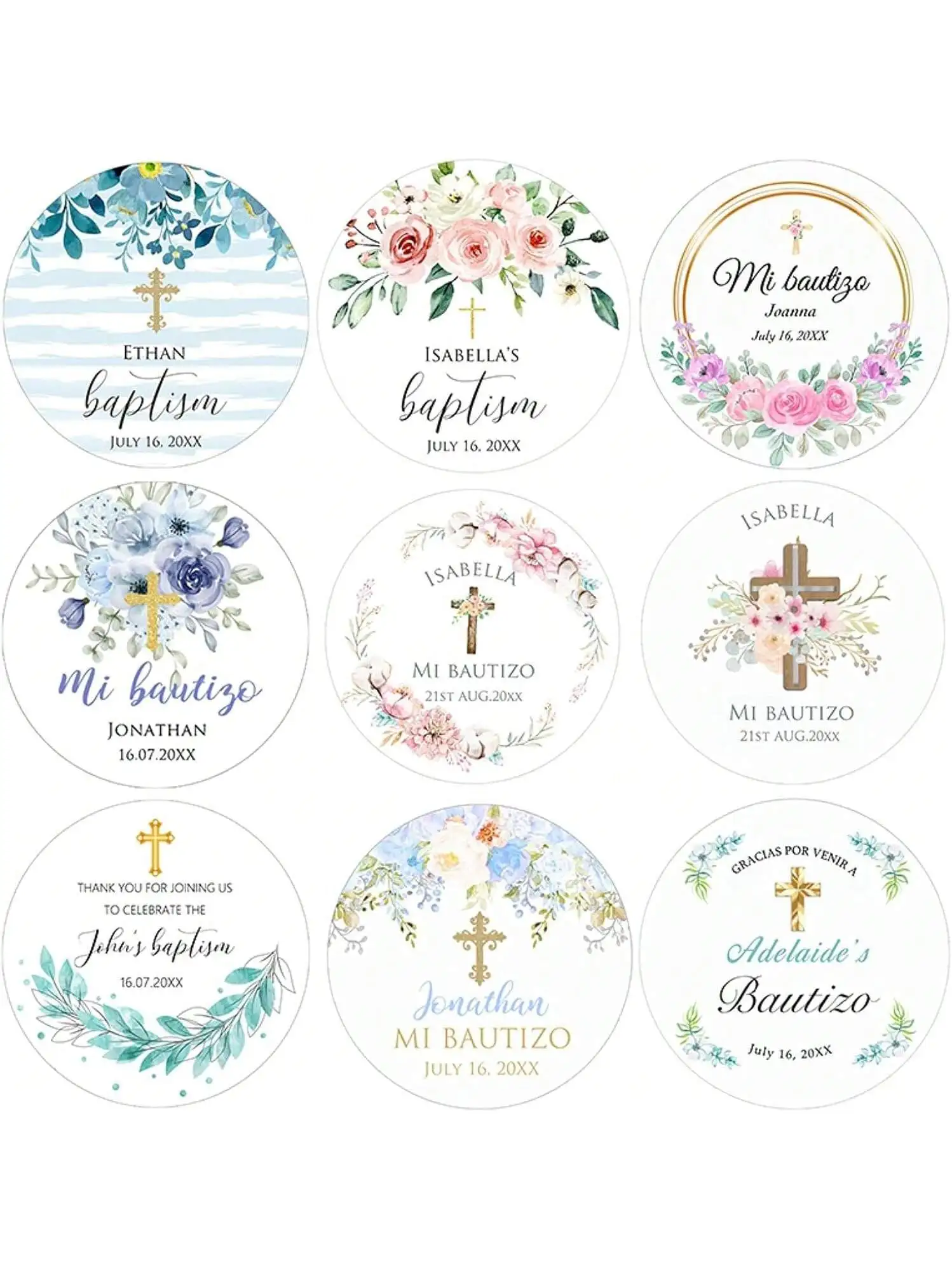 10-100PCS Waterproof Stickers for First Communion Personalized Name Tags 5-7CM Catholic Church Events Holy Communion Favor